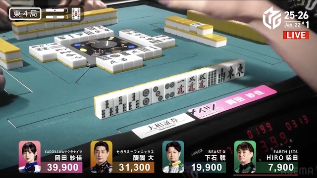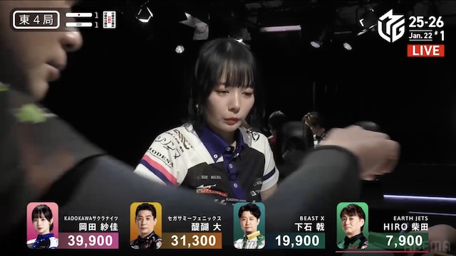 オカピー、去年は1年間でトップが遅かったしね。トップを取りたい気持ちは分かるんだけど、鳴きという小技が小さく見えて邪魔していた。普通に自分でゲームを楽しめれば、もっとトップは早かったね。そうするとチームの環境も変わるし、みんな変わっていたと思うよ。チーム戦をやっていて、女子が活躍すればそのチームは活躍するから。その意味では、サクラナイツは岡田さんしかいないから、岡田さんが頑張るしかない。トップは欲しいだろうけど、その前に自分で麻雀を楽しむことが一番大事なんだよ。岡田さんのファンはそれを望んでいると思うよ。だから自分を表現する麻雀を打たないと。オカピーが食い散らかして1000点2000点とアガったって、アガればうれしいという人もいるかもしれないけど、基本的には高い手をバシバシアガって「さすがオカピー!」となるのが人気なんだと思うしね。