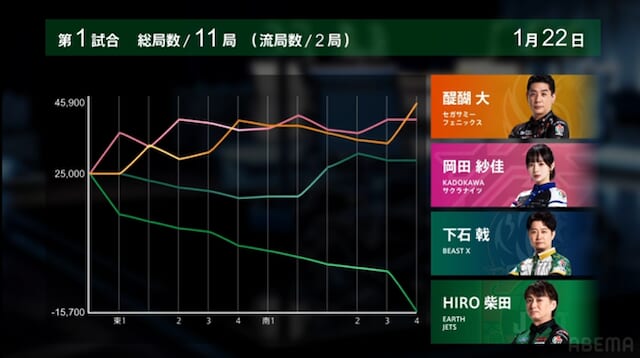 醍醐と岡田、それぞれの打ち回しの対照性が際立ち、実に見応えのある一戦となった。スピードを重視する岡田と、好形を追求する醍醐、相反するスタイルがぶつかり合い、麻雀の面白さが存分に詰まった半荘だった。