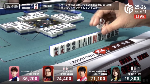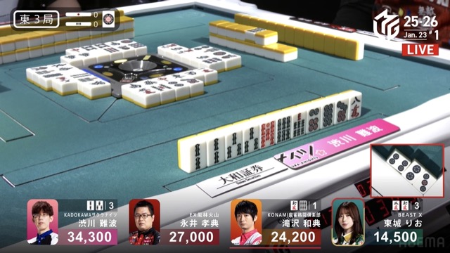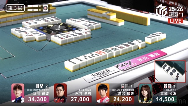 永井孝典、貫禄の12勝目〜渋川難波の四暗刻を止めた3m【Mリーグ2025-26 レギュラーシーズン 観戦記 1/23 第1試合(麻雀チャンネル)】担当記者 千嶋辰治