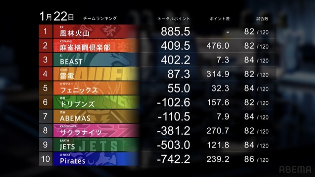 サクラナイツは現在8位。