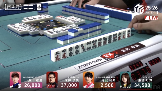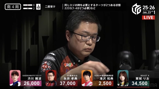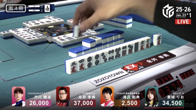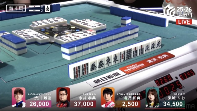 を放銃してゲームセットだったが、奇しくもアガリ逃しの格好となって嫌な雰囲気が漂うも、そこは充実の永井。