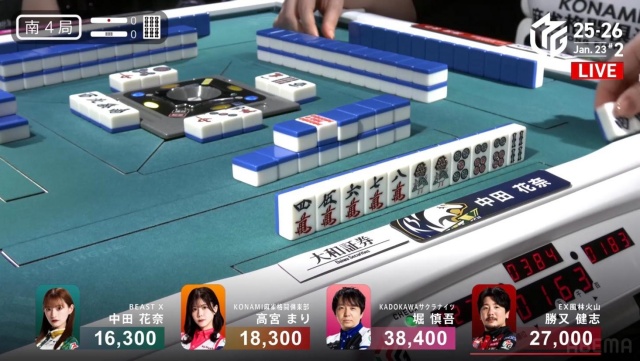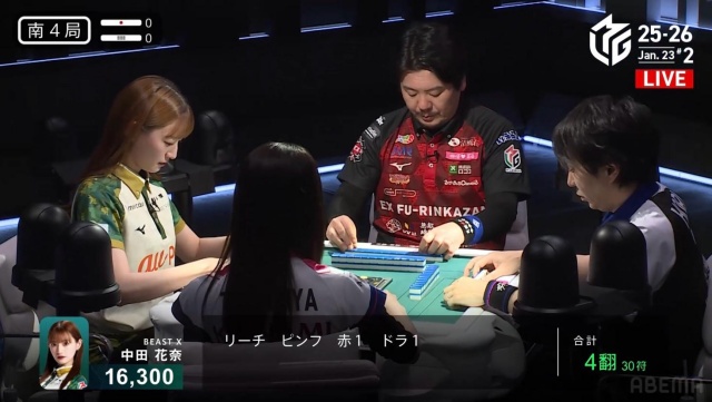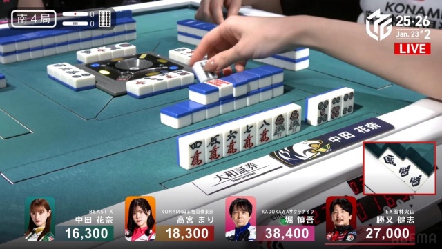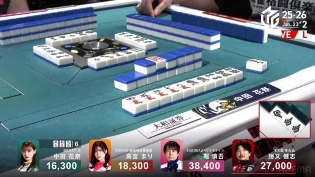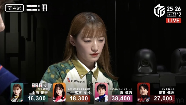 3着目の高宮とは2,000点差であり、マンガンツモなら2着浮上。
