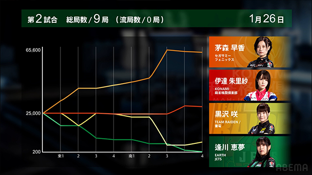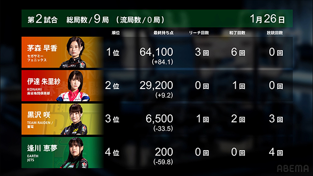 9局中6回は茅森のアガリ。アガリにアガリ倒しての茅森らしい大トップ!