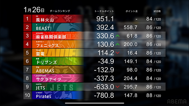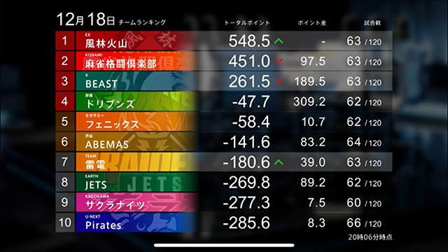直接対決の多いMリーグ。最終順位はまだまだわからない。