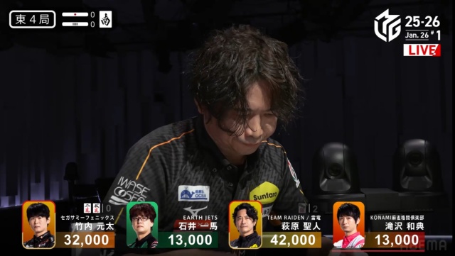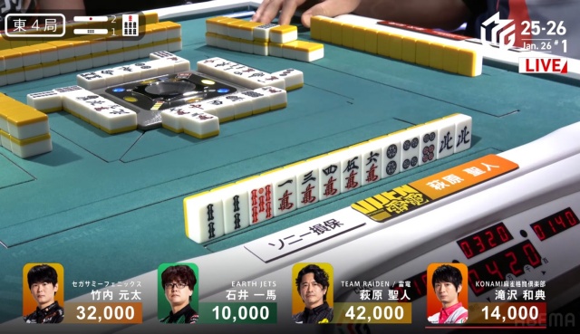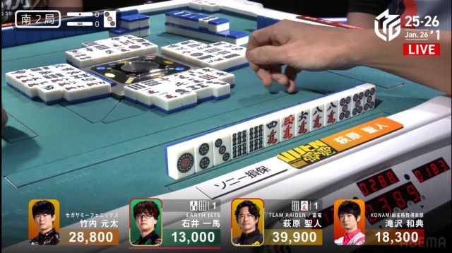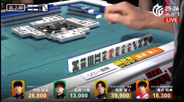 現状萩原はトップ目で、親の滝沢の連荘が無ければ最悪でも局は進んでくれる。