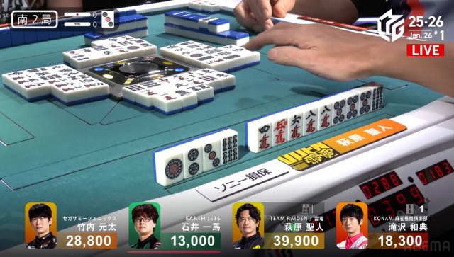 萩原が少し変わった牌の並び方にしていた。