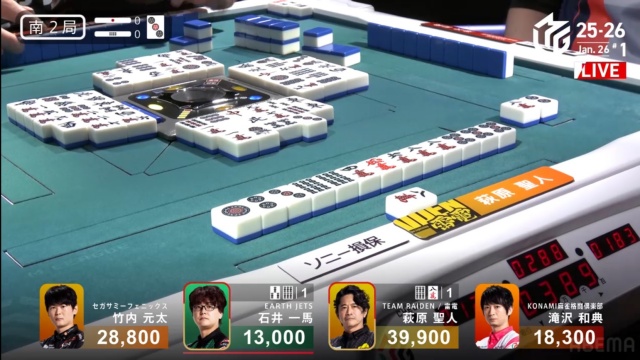 この局の決着は、3人目で追い付いた元太のリーチ宣言牌、