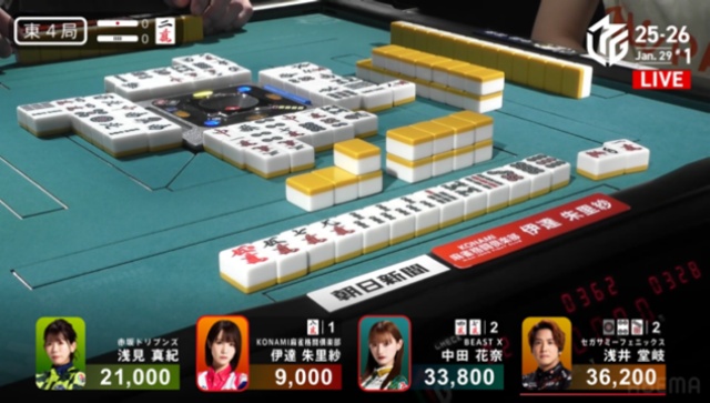 またもや伊達VS中田のぶつかり合いは伊達が12000の和了!