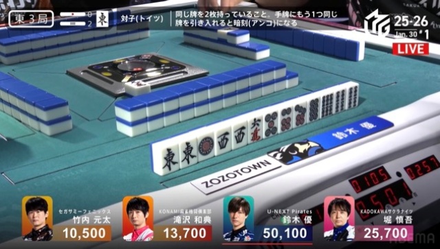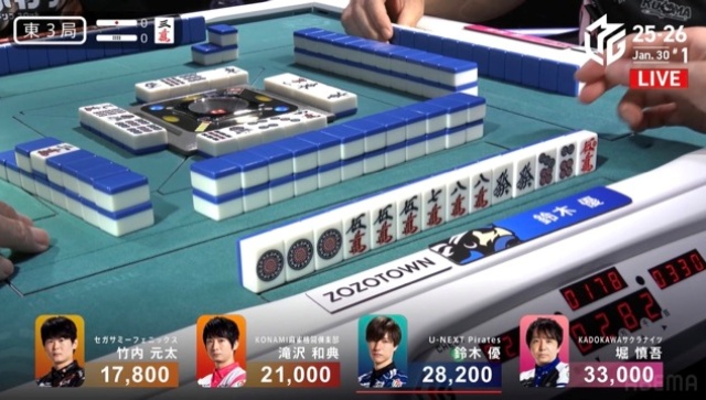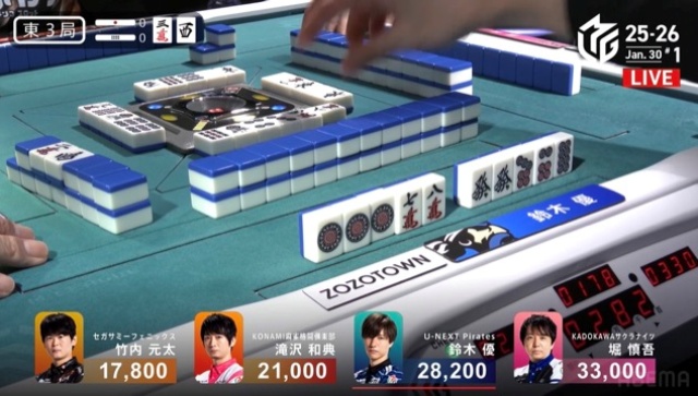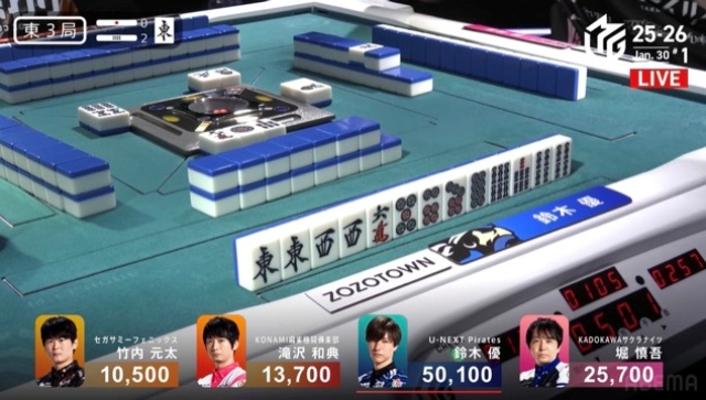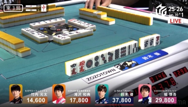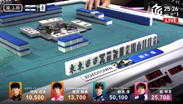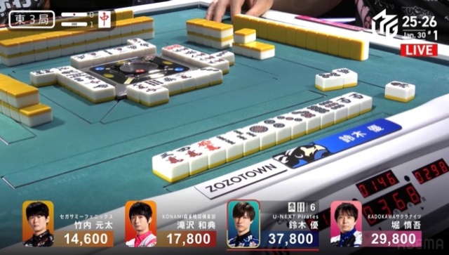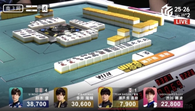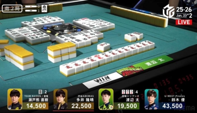 2戦前、渡辺太が決めた親の三倍満によりトップが手からすり抜けていき、