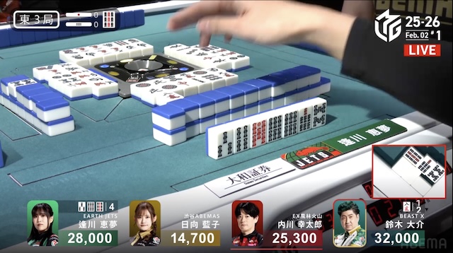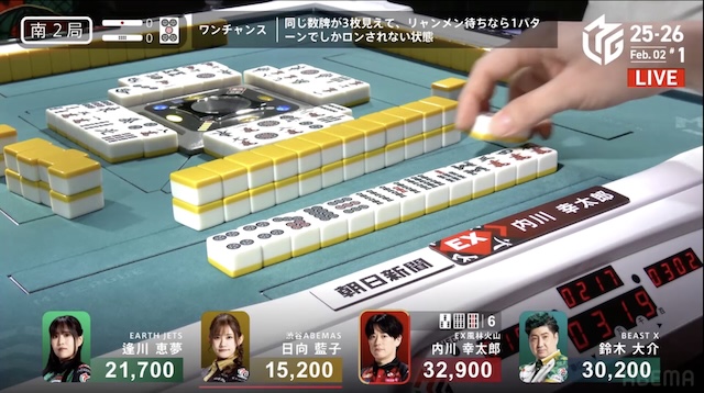 で結局放銃になってしまうというのが、苦しいチームと好調のチームの差が出てしまった試合だったなと感じましたね。内川君はテンパイすれば待ちは必ず残っているし、待ち牌が少なくてもツモるとか、逢川さんがカンしてドラが2枚乗ってからツモとかありましたし。逢川さんは前回でいいトップを取っていて、今日は面白くなると思いましたし、それを期待してチームも起用したと思いますけど、内川君の好調ぶりには勝てなかったなと。