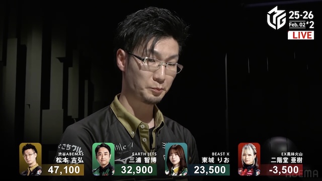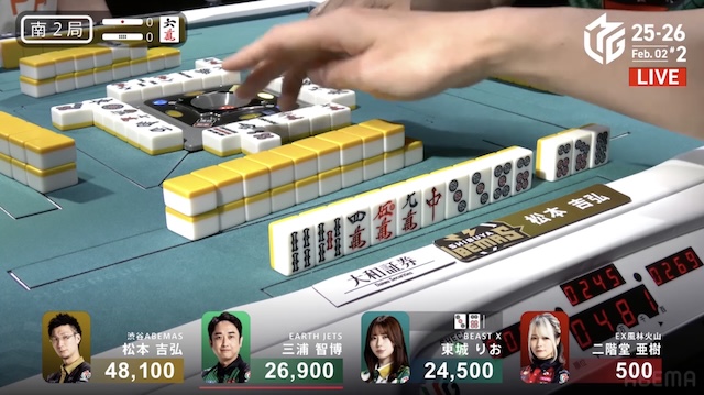 今日の2戦目はとにかく松本君でした。日向さんの1戦目のラスで「ABEMASは大丈夫かな」と思っていましたけど、今年の多井さんはどんどん出て結果を残して頑張っているし、(白鳥)翔ちゃんも鳳凰位を連覇して完全にMリーグに集中できるし、これでここまで苦しんできた松本君が好調になってきたら、他のチームはしんどいかなと思えるような1日でした。役者が揃ったという感じで、下のチームはABEMASを苦しめようと思うかもしれないけど、ABEMASは明るい材料が多いので上昇してきそうな予感がしますし、追いかけるチームとしては苦しくなってきたかもしれないですね。