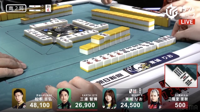 待ちのテンパイが山に3枚。今までの松本君を見ているようで、東城さんがアガるんだろうなと思いながら見ていましたけど、最後の