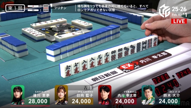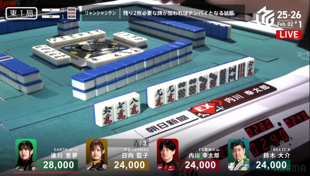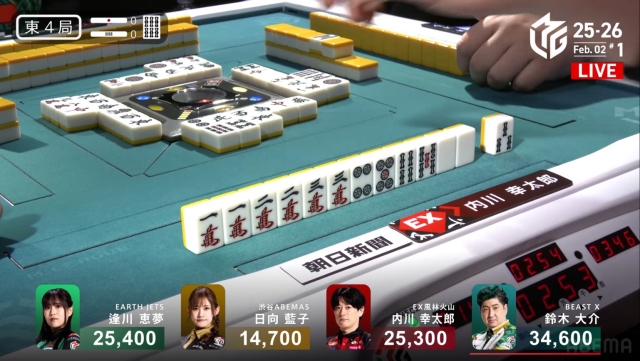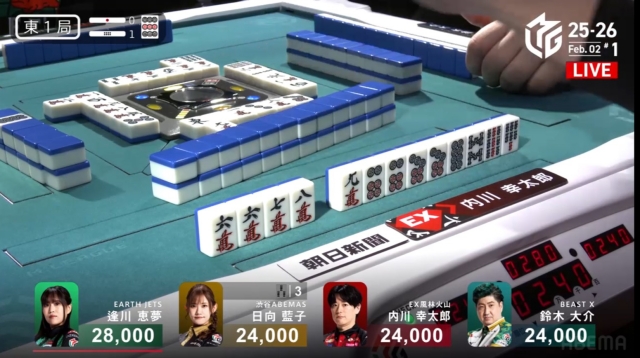 冒頭では新記録達成へ、と煽るような文を連ねたが、内川の今日の闘牌は全体的に安定感のある立ち回りだった。