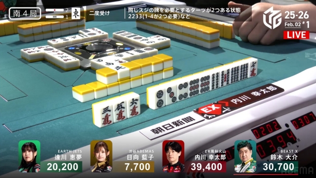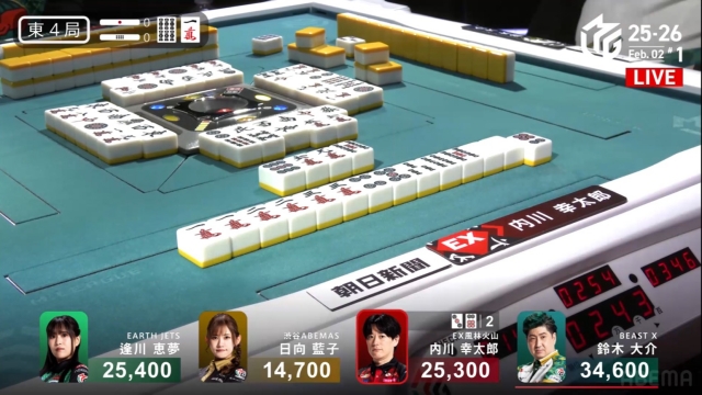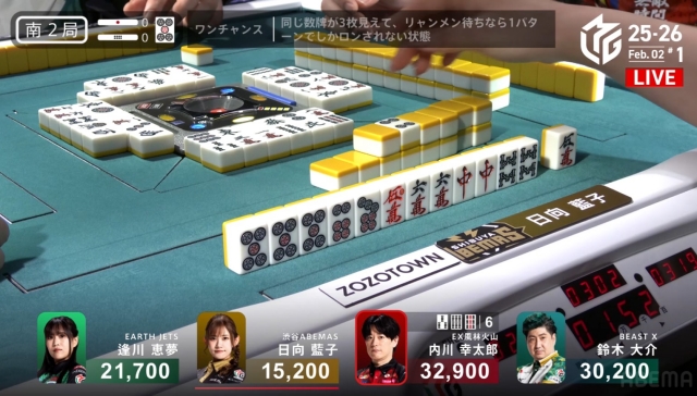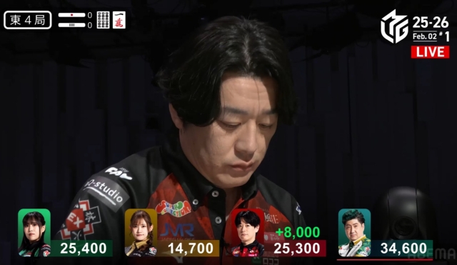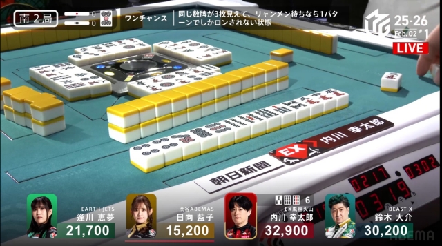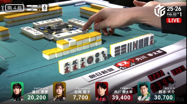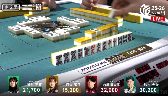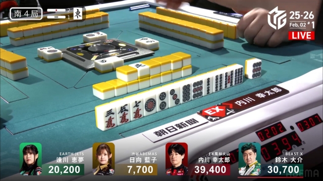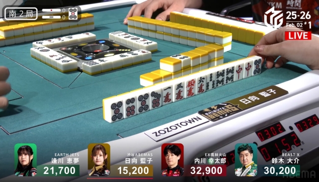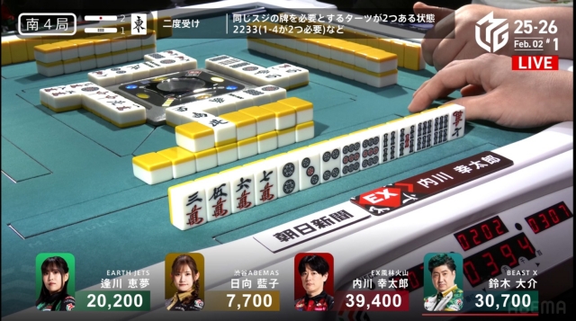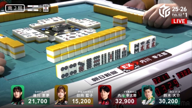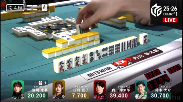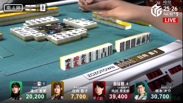 とタンヤオのバックで仕掛けられるため、これはかなり仕掛けたい牌に見えたが、Mリーグという舞台はこういった親の仕掛けに対してシビアに絞られる可能性もある。