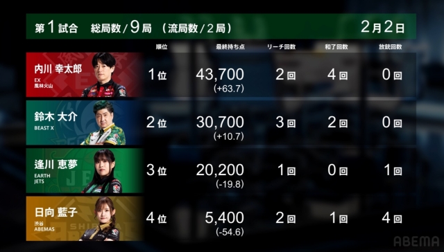 一時的ではあるものの、Mリーグレギュラーシーズンの最高ポイントを更新することとなった。