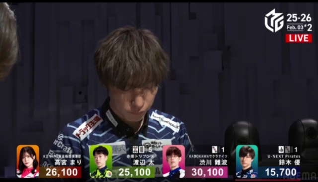 そうはさせじと、負けられないサクラの渋川が、頭ひとつ抜けだすアガリを決める。