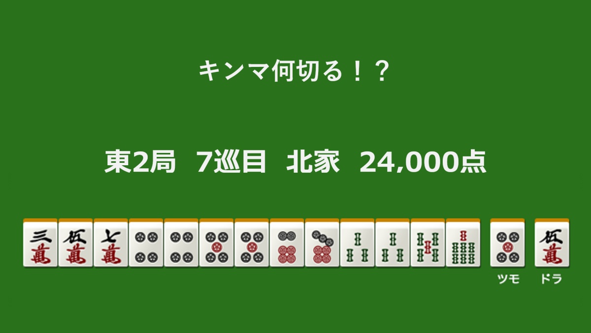 何切る?(麻雀何切る問題)2026.02.04 キンマweb編集部 キンマ何切る!? 【2月4日】 東2局 7巡目 北家 24,000点 キンマ何切る!? 【2月4日】 三萬 五萬 七萬 4筒 5筒 6筒 7筒 3索 5索 7索 結果を見る Loading ... フォロー この記事が気に入ったら フォローをお願いいたします! 最新の麻雀・Mリーグ情報をお届けします! \近代麻雀「何切る」問題におすすめの本!/ ツイート LINE