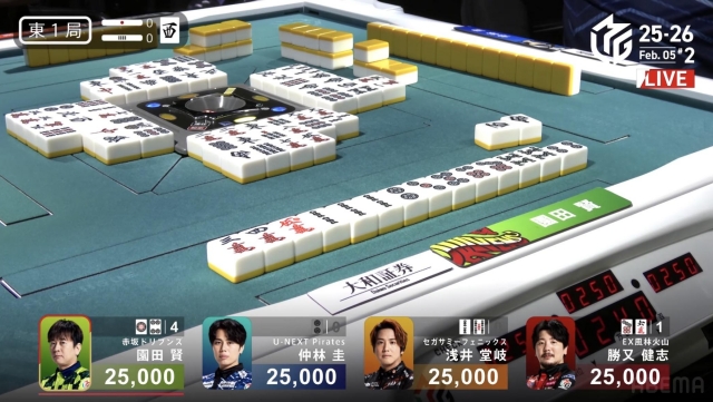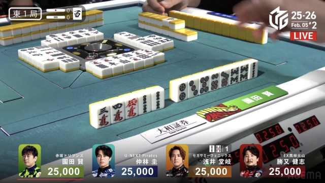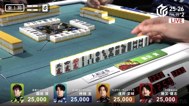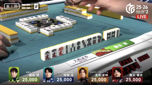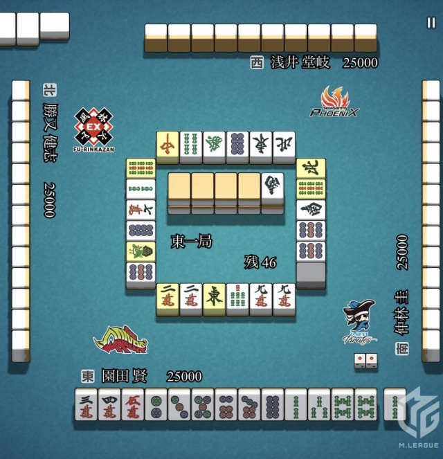 と、園田の「フーロ・マジック」ばかりを注目してきたが、ここで東1局の手順を見てみよう。