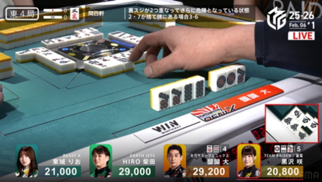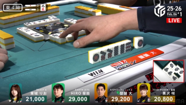 しかし、東2局では醍醐・柴田のリーチに押され、筋になった