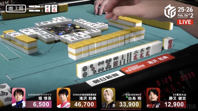 ただ、あのときに内川君が三色の1シャンテンで、生牌の