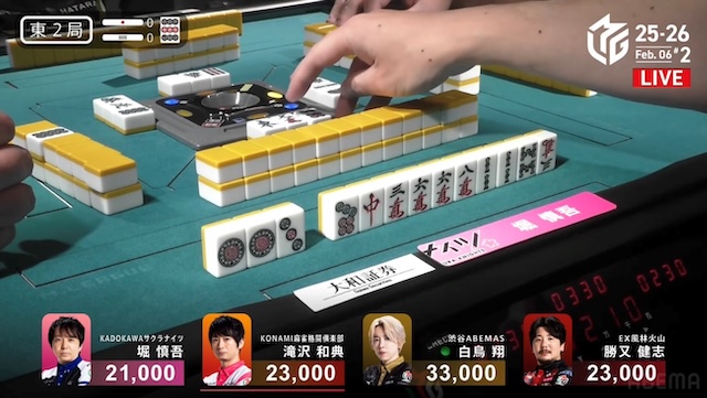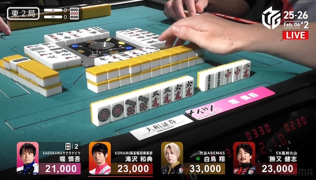 ツモで2,000-4,000となり、逆襲の一歩目を踏み出した。