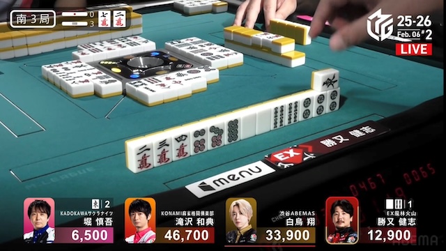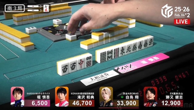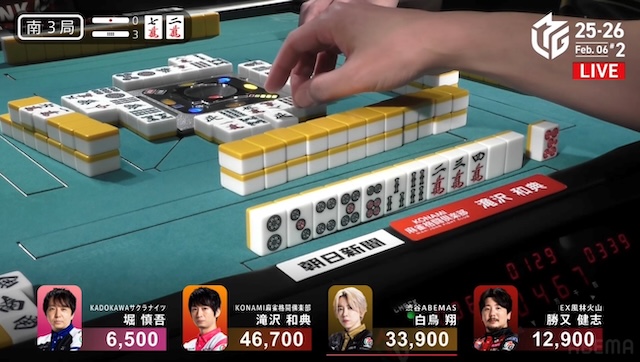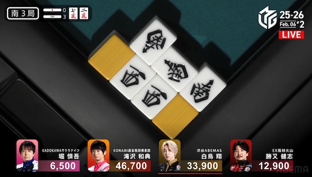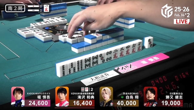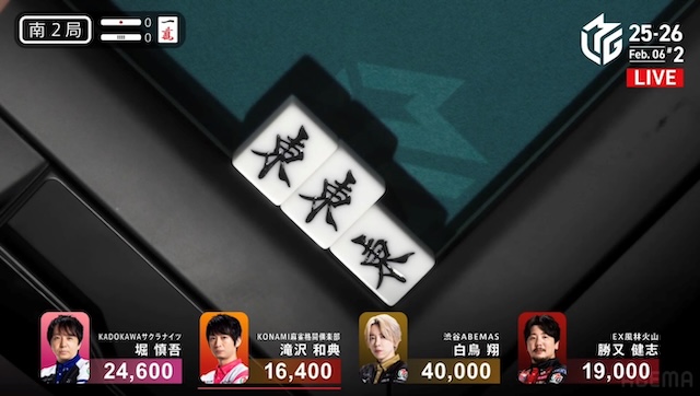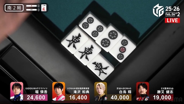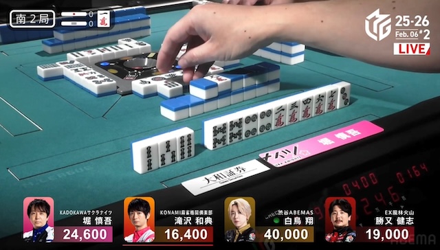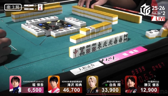 を止めることは不可能で、親番のないところから12,000点を奪われた。