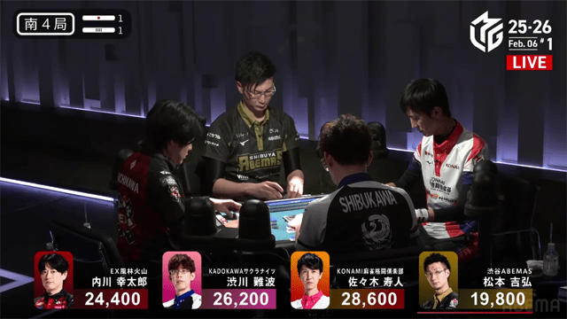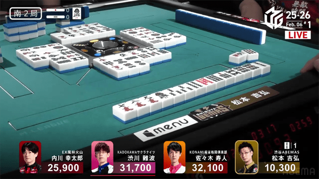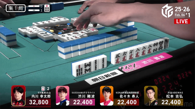西家:佐々木寿人(KONAMI麻雀格闘倶楽部)