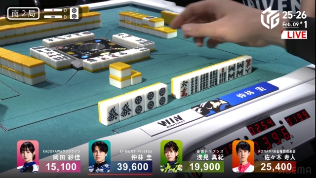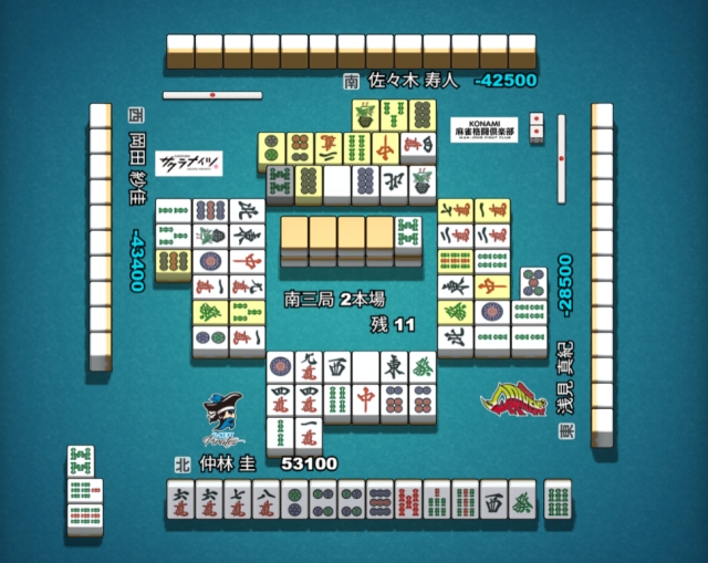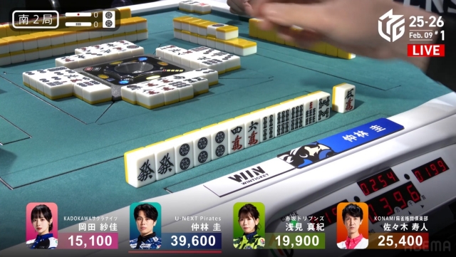 が2枚打たれた瞬間に仲林がテンパイ。