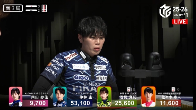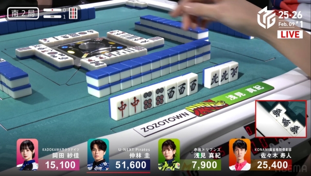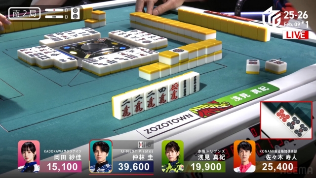 対して今親番の浅見は25600。ここで12000クラスをアガられてしまうと、あと一度の親の満貫でひっくり返る点差になりかねない。