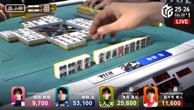 その親番浅見のリーチを受けた一発目、仲林の手が止まる。
