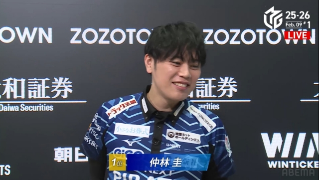 個人4勝目、14回トップを取らなければならない内の1回を手にした仲林。