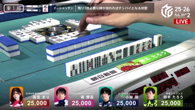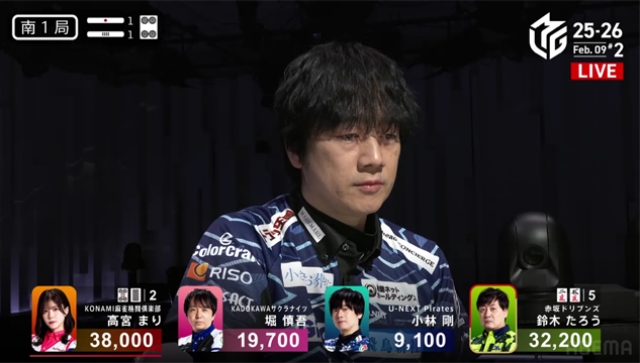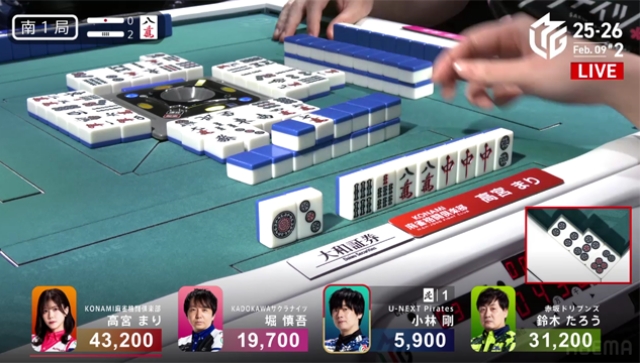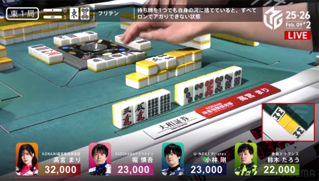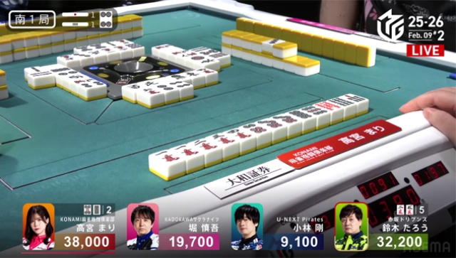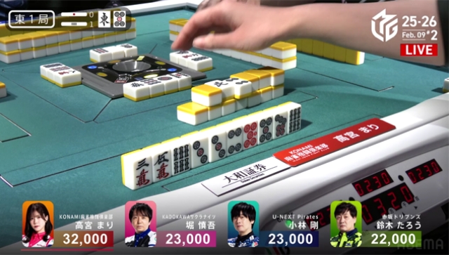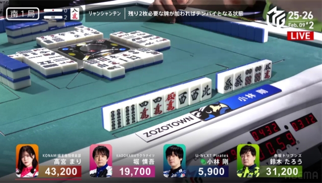 たろうの先制リーチに追いついた高宮がダマテンに構え、小林から出た