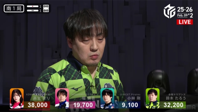 放銃した小林、リーチを蹴られたたろうの表情に、哀愁が漂っている。
