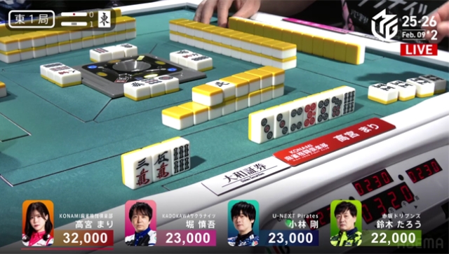 東家:高宮まり(KONAMI麻雀格闘倶楽部)