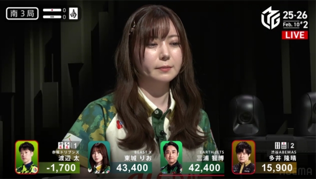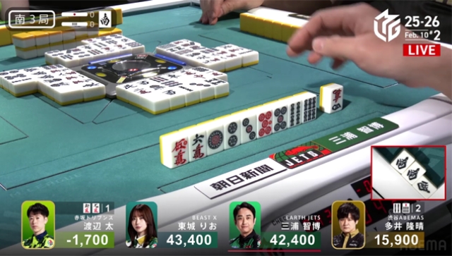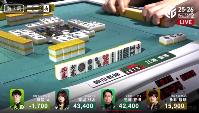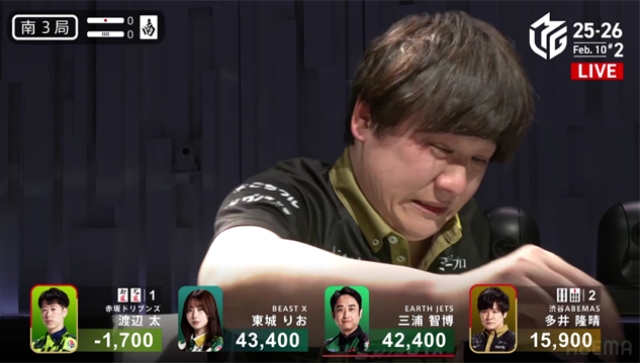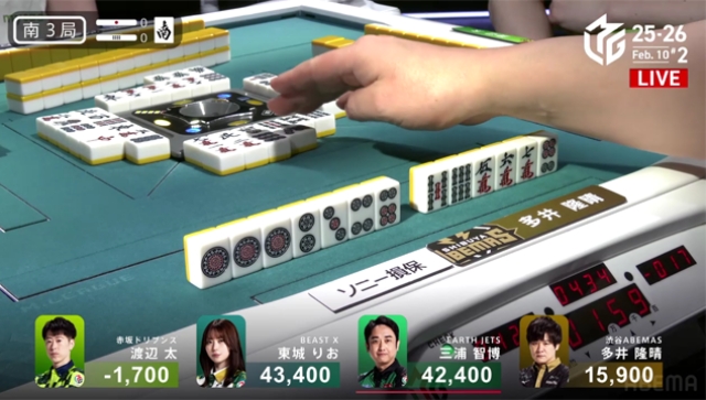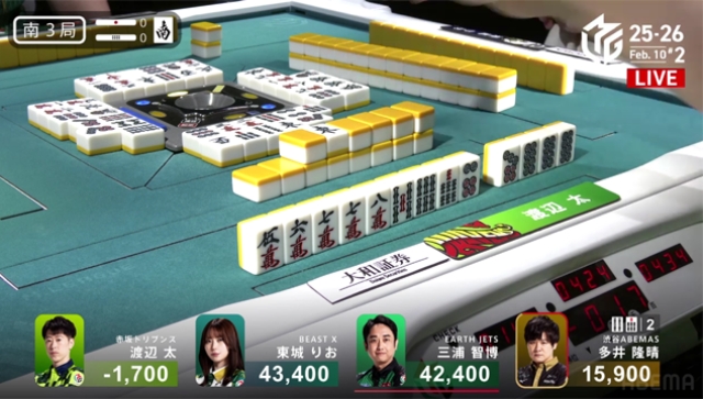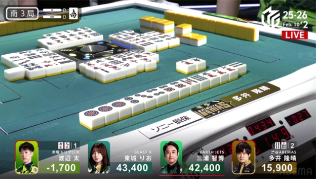 南4局は、三浦が逆転の手を入れるものの、ABEMASとのポイント差を意識した太がピンフツモ、400・700のアガリで多井の親を落としゲームセットとなった。