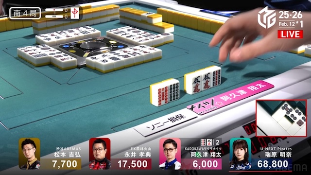 このアガリにより、瑞原のトップが確定。苦しい戦いが続いていたパイレーツにとって、まさに待望のトップとなった。