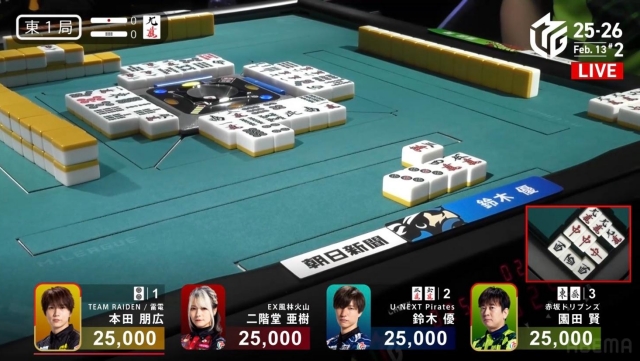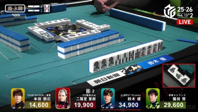 その前から、アガリのリンクから滑り落ちないように粘っていたが、このド終盤でもテンパイしたらドラの