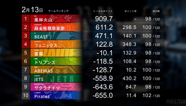 白鳥の所属する渋谷ABEMASは現在第7位。