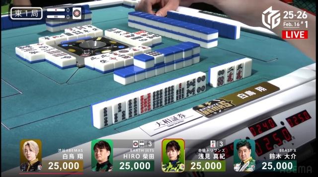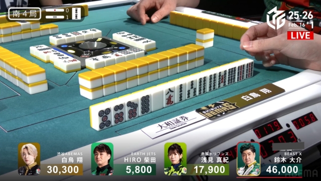 親のリーチに万が一、12000を打ち上げると、瞬く間に同点。いや、1本場であるから、ドリブンズに逆転されてしまうことになる。