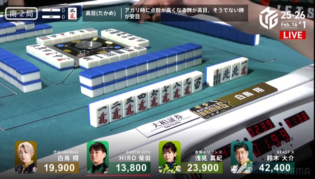 浅見は東2局にも大介から3900をアガリ、軽快に歩を進めていく。