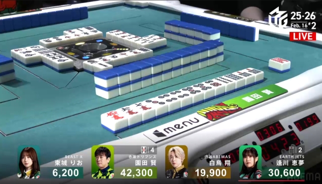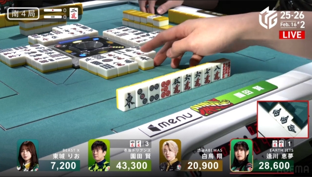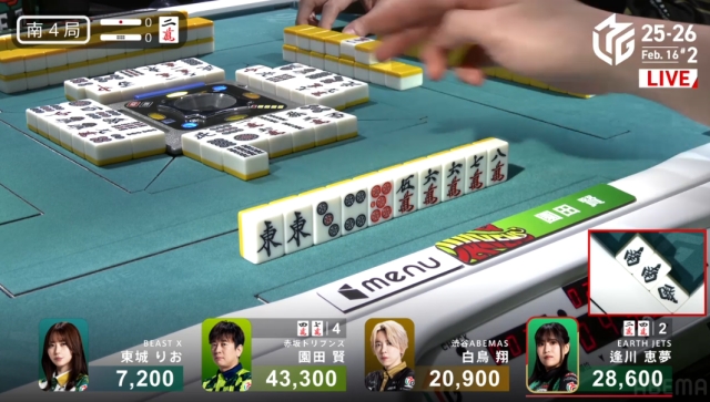 東城からすれば園田のノーテンまで読み筋だったが、なんとこれで園田はうまく聴牌を入れることに。