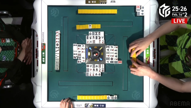 仮に456の三色でリーチとなった場合、逢川の親を終わらせたい園田が二人で親を蹴ろうとまっすぐ押してきてのよもやのハネマン出和了りもある。そうなればなんとトップ逆転。
