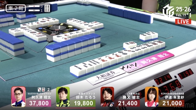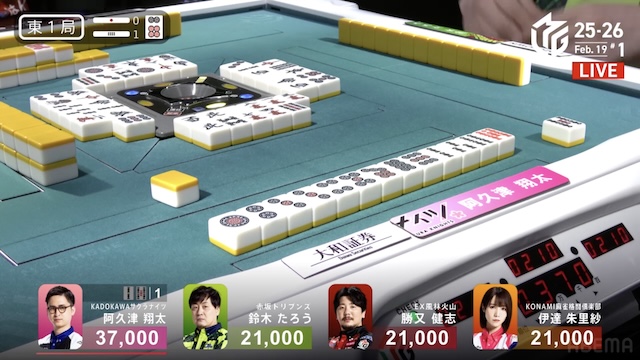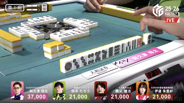 東2局1本場では阿久津のリーチ宣言牌