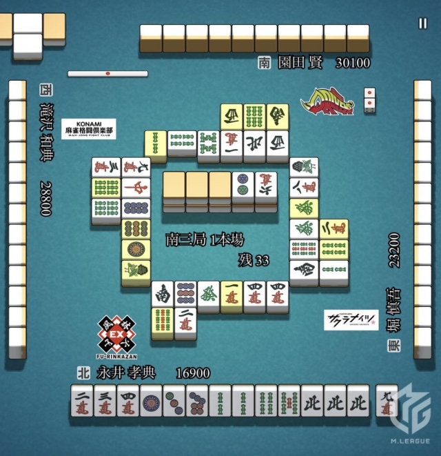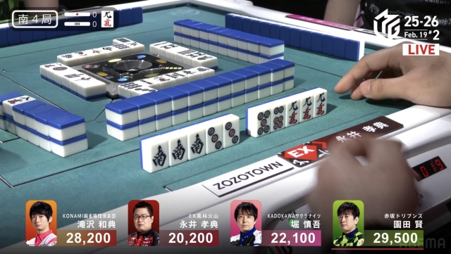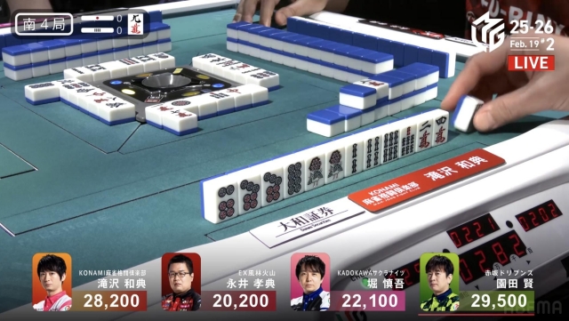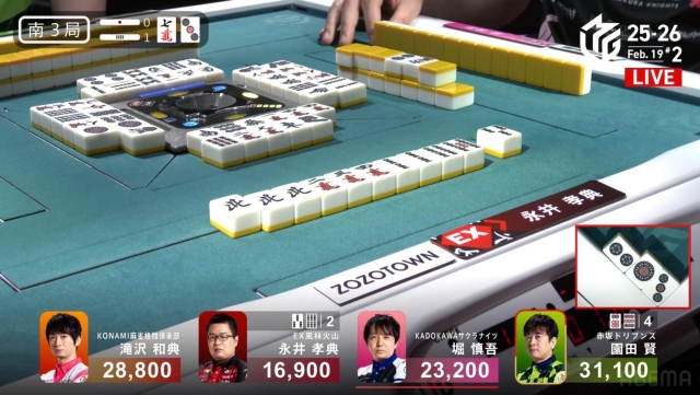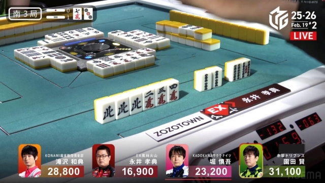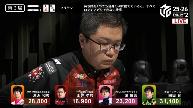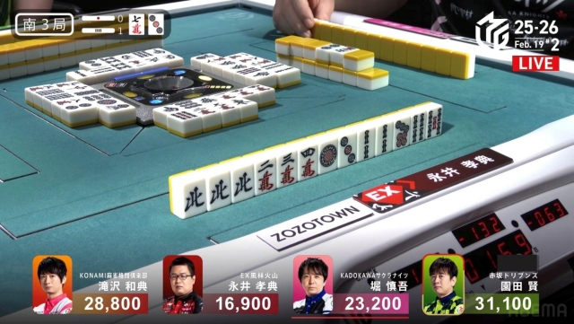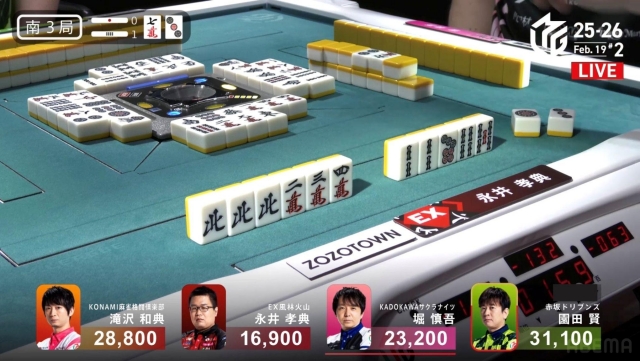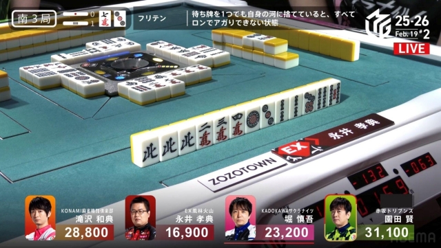 一方で、園田からアガれば滝沢と並んで同点1着。滝沢からのロンなら単独2着。そして、永井がツモったときにはトップとなる。