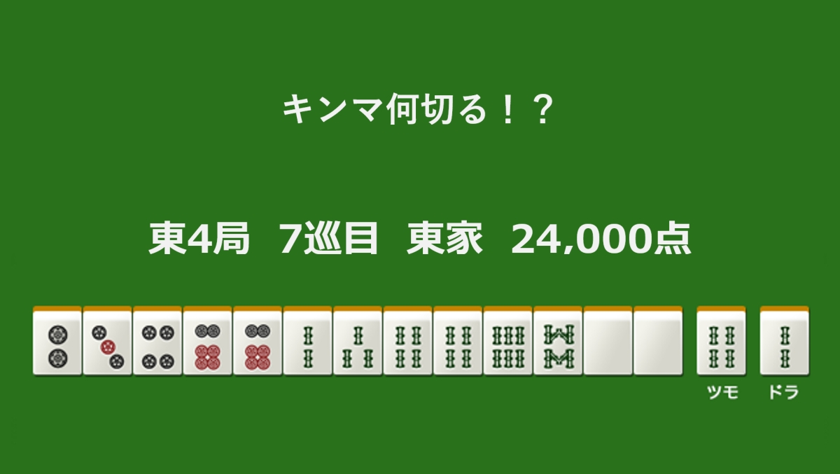 何切る?(麻雀何切る問題)2026.02.22 キンマweb編集部 キンマ何切る!? 【2月22日】 東4局 7巡目 東家 24,000点 キンマ何切る!? 【2月22日】 2筒 3筒 4筒 6筒 2索 3索 4索 6索 8索 白 結果を見る Loading ... フォロー この記事が気に入ったら フォローをお願いいたします! 最新の麻雀・Mリーグ情報をお届けします! \近代麻雀「何切る」問題におすすめの本!/ ツイート LINE