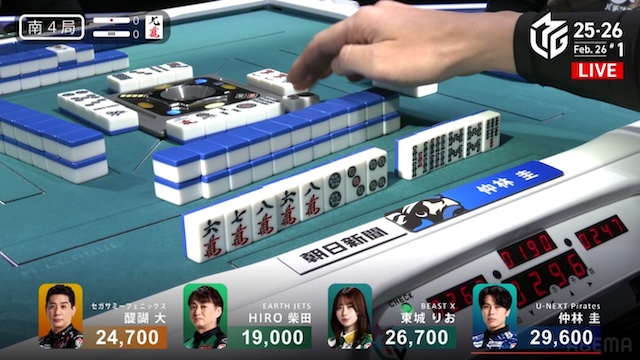 さらに本日は、長崎でチームのパブリックビューイングも開催されている。現地で声援を送るファンにとっても、東城の闘牌は大きな注目ポイントとなるだろう。チームにとって価値ある加点はもちろん、遠く離れた会場の熱気に応えるようなトップを届けることができるか。シーズン終盤の緊張感と、応援を背負う責任感が交錯する中、東城一打に視線が集まる。