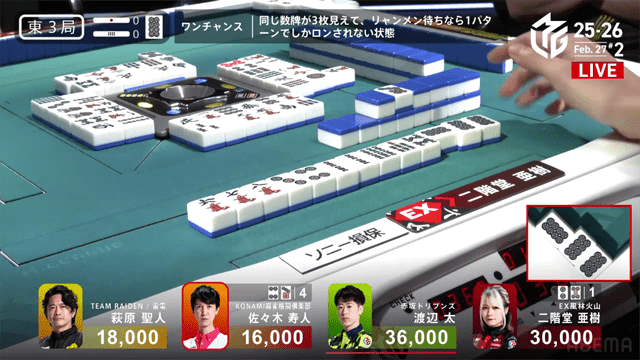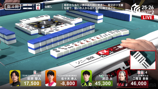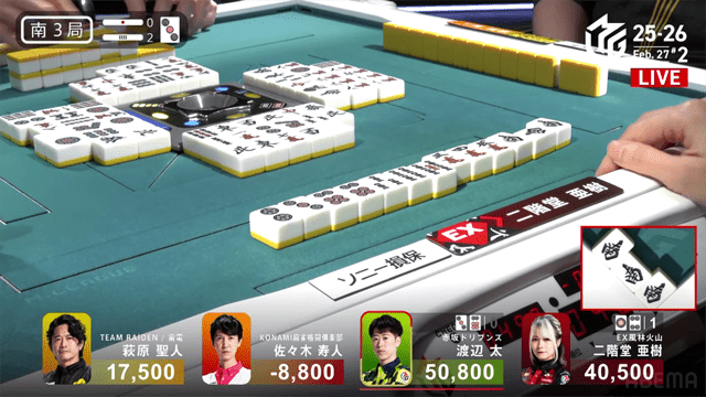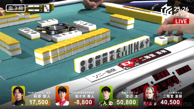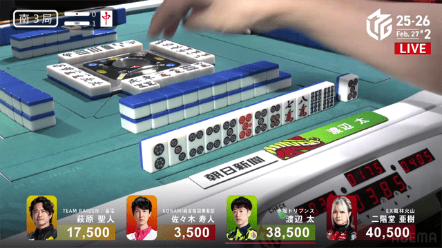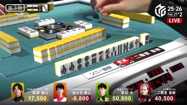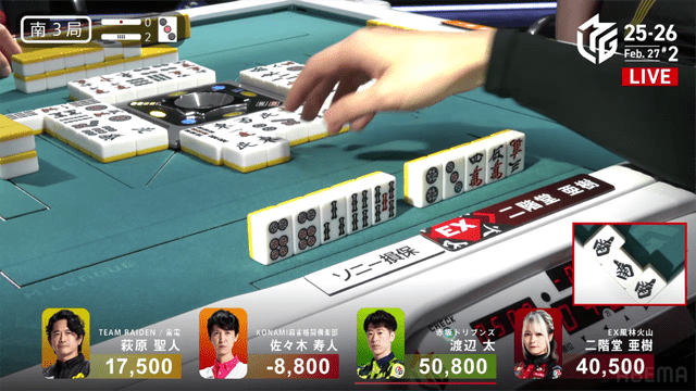 さらにはボーダーライン付近で争うドリブンズと雷電の思惑も絡む本試合は、風林火山の亜樹とドリブンズの太による、抜きつ抜かれつの激しい闘牌がくり広げられた。