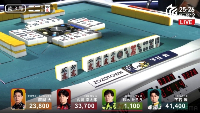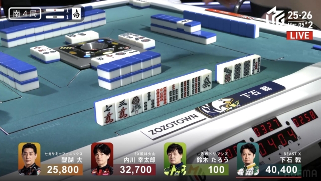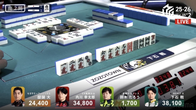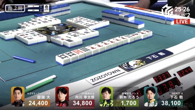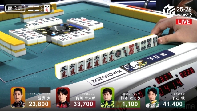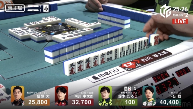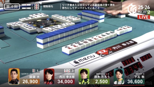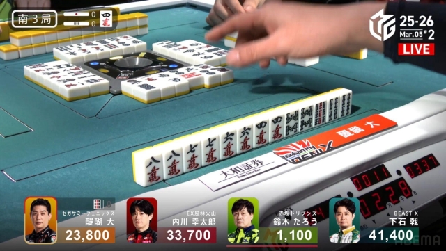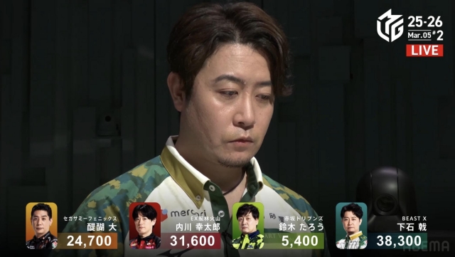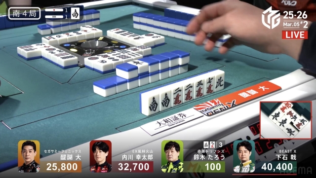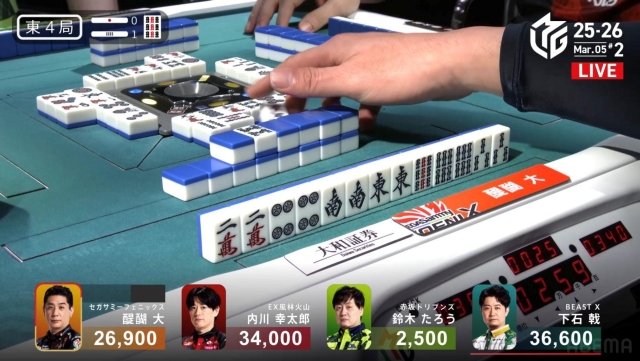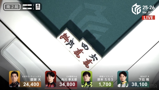 仕掛けた内川がアガり、醍醐のリーチは不発に終わる。
