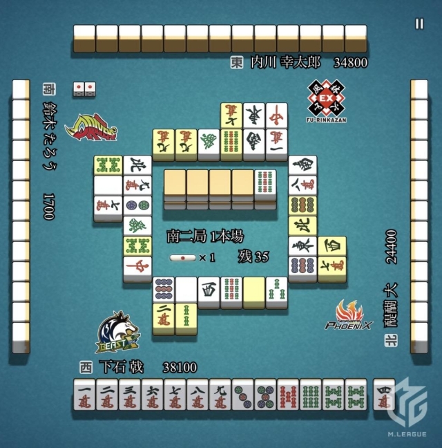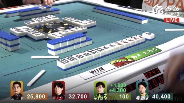一通赤、500-1000は600-1100をアガって、ライバル内川の親を落とすことに成功する。