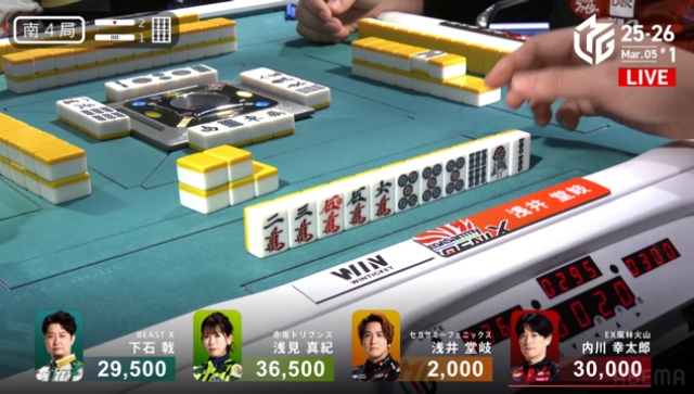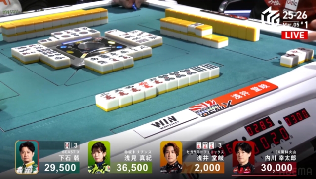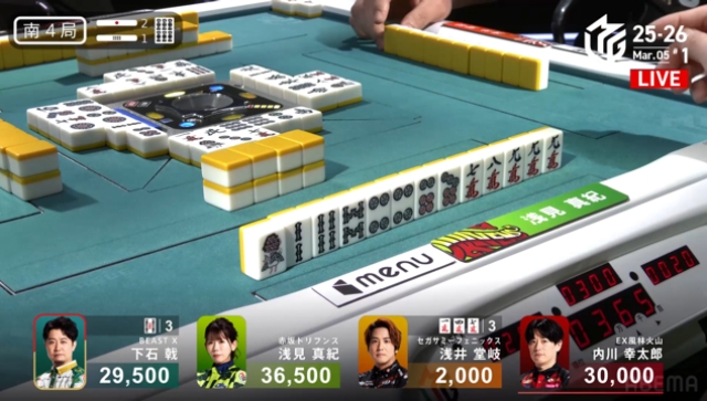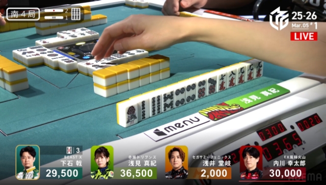 この後、崖っぷちの親・内川にもリーチが入り、下石と内川の2人テンパイで流局。